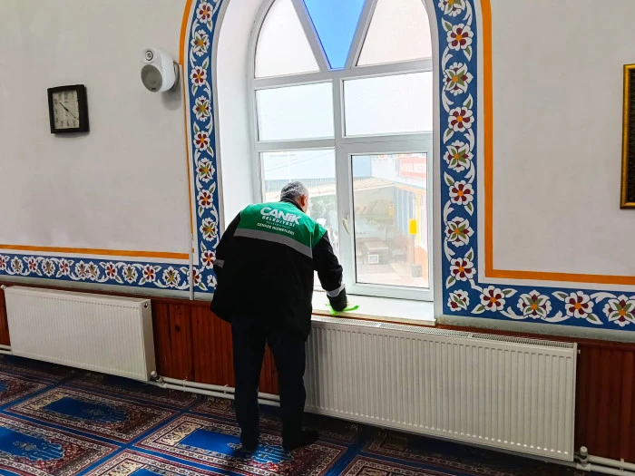 Belediye bünyesindeki profesyonel ekipler tarafından yürütülen çalışmalarda; cami halıları özel makinelerle yıkanıp süpürülürken, minberlerden pencere pervazlarına kadar her nokta titizlikle elden geçiriliyor. İç mekânlardaki detaylı temizliğin yanı sıra, cami avluları da dezenfektanlı sularla yıkanarak tam hijyen sağlanıyor.