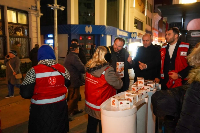 SAMSUN – Milliyetçi Hareket Partisi (MHP) Samsun İl Başkanlığı, Miraç Kandili münasebetiyle kentin kalbi sayılan Gazi Müzesi önünde anlamlı bir programa imza attı. Akşam saatlerinde gerçekleştirilen etkinlikte, parti teşkilatı vatandaşlarla bir araya gelerek kandil simidi dağıttı.