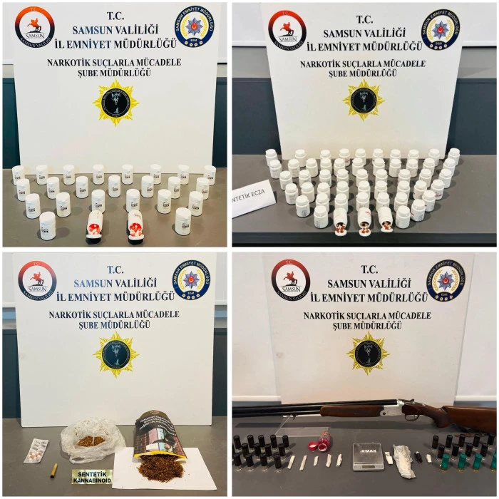 Samsun Emniyet Müdürlüğü’ne bağlı Narkotik ekiplerinin İlkadım ilçesinde düzenlediği eş zamanlı operasyonda, binlerce uyuşturucu hapın yanı sıra ruhsatsız silahlar ele geçirildi. Olayla ilgili 9 kişi hakkında adli işlem başlatıldı.